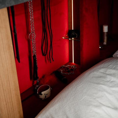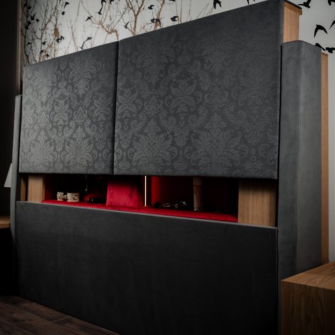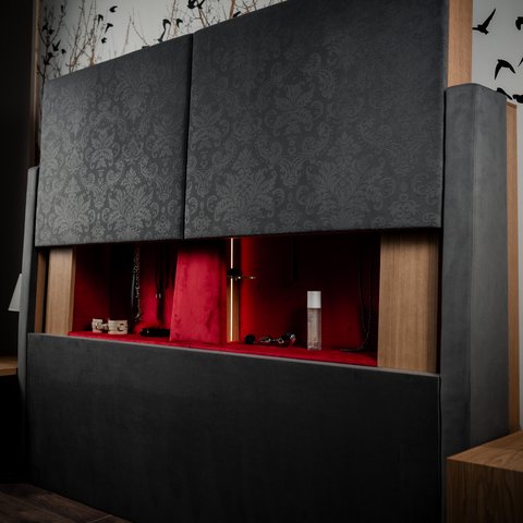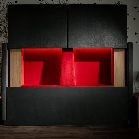 Es gibt Dinge, die nicht sichtbar sein müssen, um wichtig zu sein. Das diskrete Aufbewahrungssystem im Kopfteil ist Ausdruck dieser Haltung: funktional, hygienisch, sicher und gleichzeitig vollkommen selbstverständlich. Ein Geheimnis, das man nicht teilt, sondern miteinander erlebt.